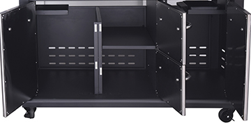 The spacious lower shelf with organized cabinets offers safe place for LP cylinder and other large grilling accessories.