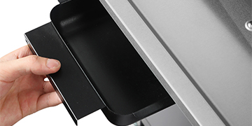 Full-sized galvanized grease tray and large grease cup, which are removable and won’t degrade or corrode, facilitate easy and effortless cleanup and protect floors from drippings.