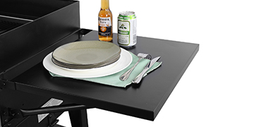 Put various seasonings on the side tables to keep them within arm’s reach. Collapsible design enables its compact storage after use.
