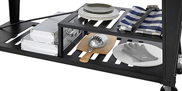 Double-layer slatted bottom shelves are for convenient storage of small tools and large accessories after grilling.