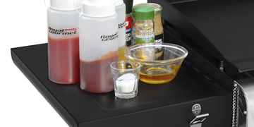 Two fixed side tables bring convenience by offering additional space for food preparation and holding kinds of items such as seasonings and plates.