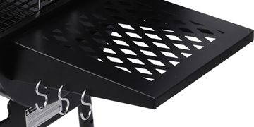 Sturdy mesh side table on the right side with 3 “S” hooks frees up extra space to prepare food and place various kinds of accessories such as gloves or spatula in neat.