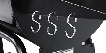 Large-size steel side table provides ample space to put on various seasonings. With three integrated “S” hooks, it’s easy to hang grill tools.