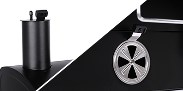 Front access door allows convenient access to stoke fire or add charcoal without opening the upper lid. Use with the smoke stack or side damper if needed.