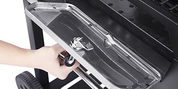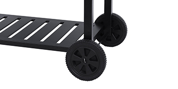 Two convenient directional wheels are user-friendly and provide breezy transport during the grilling.