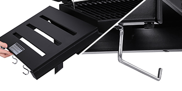Spacious bottom shelf allows you to organize some large grilling essentials within arm’s reach.