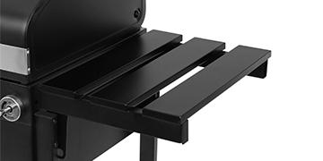 Side tables furnish extra work space for seasonings and tools to keep them within arm’s reach. It’s also easy to fold down to economize storage space when not in use.