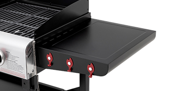 Durable side tables offer more preparation space for seasonings and platters to keep them within arm’s reach.